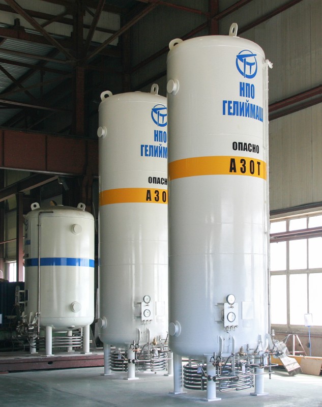 АО «НПО «ГЕЛИЙМАШ» разработало типоразмерный ряд криогенных вертикальных резервураров, предназначенных для длительного хранения криогенных жидкостей в стационарных условиях размещения резервуара. В качестве рабочих сред, которые могут храниться в резервуарах, могут быть сжиженные азот, кислород, аргон. Некоторые доработки позволяют использовать вертикальные резервуары для хранения СПГ (сжиженный природный газ).