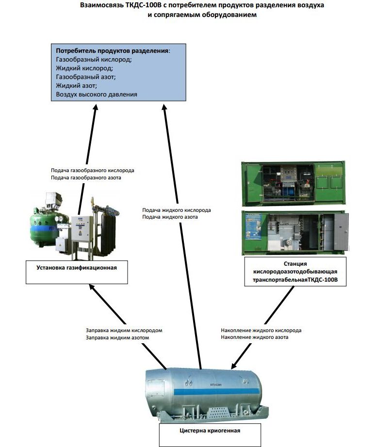 СГУ-7КМ-У эксплуатируется совместно со станцией кислородоазотодобывающей транспортабельной ТКДС-100В. Используется две установки СГУ-7КМ-У: одна для кислорода, другая для азота. Данная установка газификации СГУ-7КМ-У может применяться во всевозможных областях, где технологические процессы требуют использования газообразного кислорода или подачи в линию потребления азота.